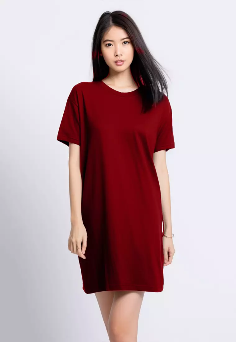 LTF03 long dress kaos t shirt wanita oversize polos maroon