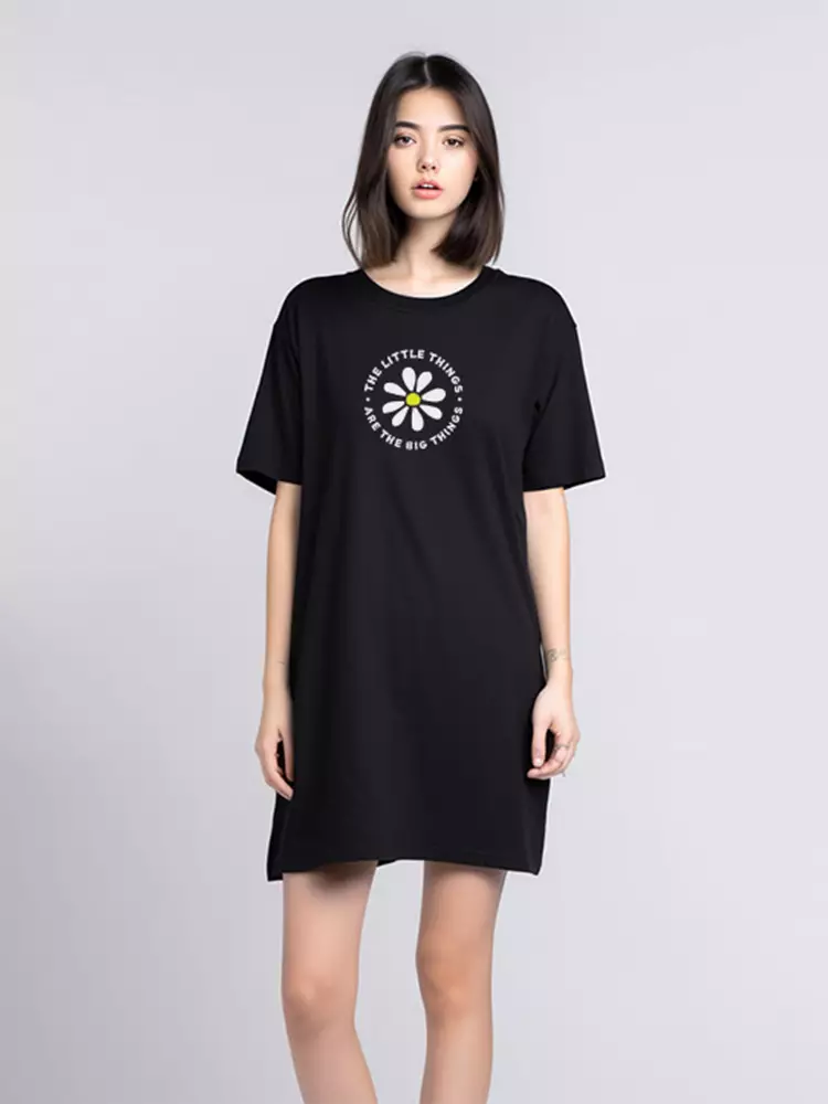 LTF10 dress t shirt kaos panjang wanita daisy little things hitam