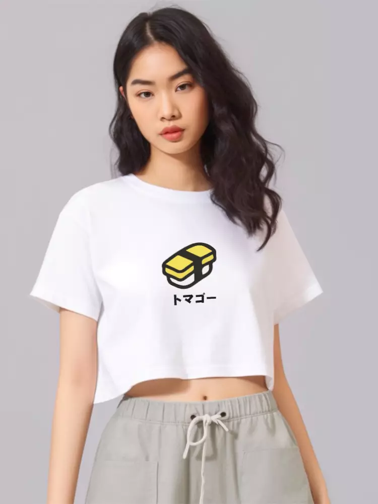 LTF17 kaos oversize crop top wanita OLC tamago sushi putih