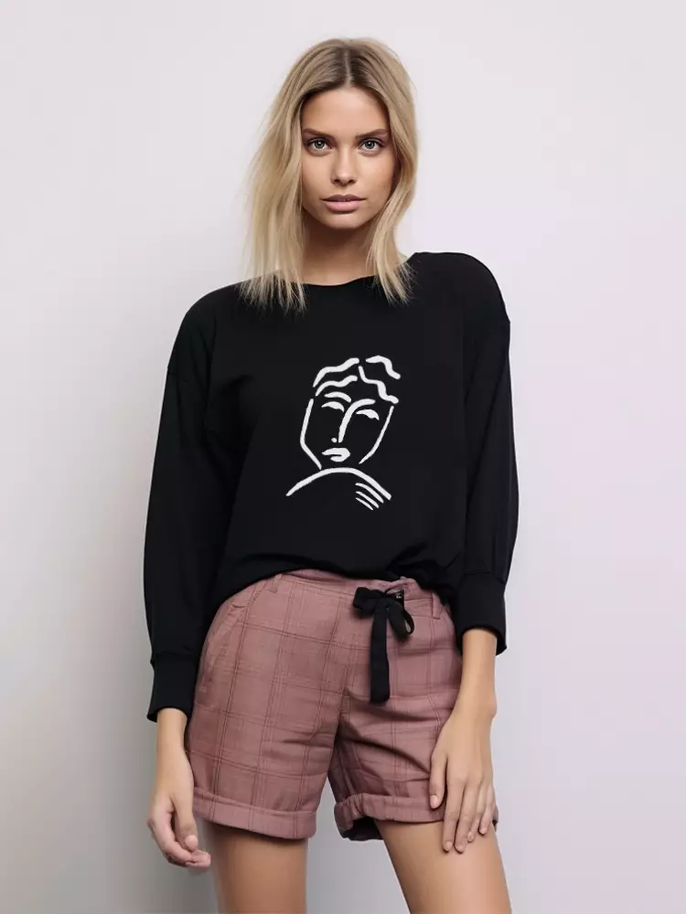 LTF20 kaos lengan panjang wanita kekinian LV artsy face hitam
