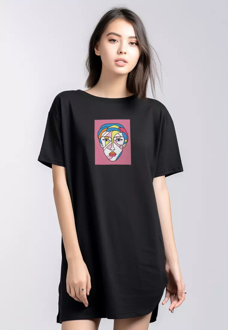 LTF30 dress hitam casual kaos dress mini dress t shirt dress wanita lady portrait hitam