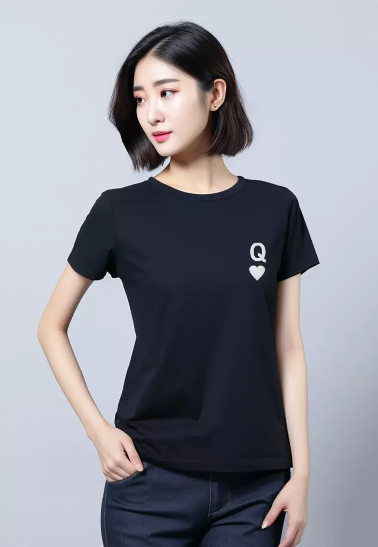 LTF33 kaos wanita lengan pendek slim fit "queen of hearts" instacool hitam