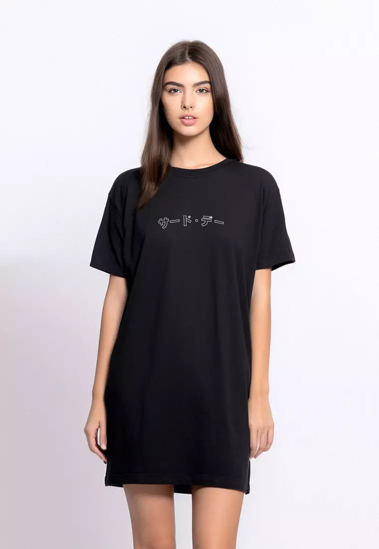 Third DayLTF45 long loose dress daster kaos wanita casual instacool LD "katakana outline arc" hitam400000.00155000.00