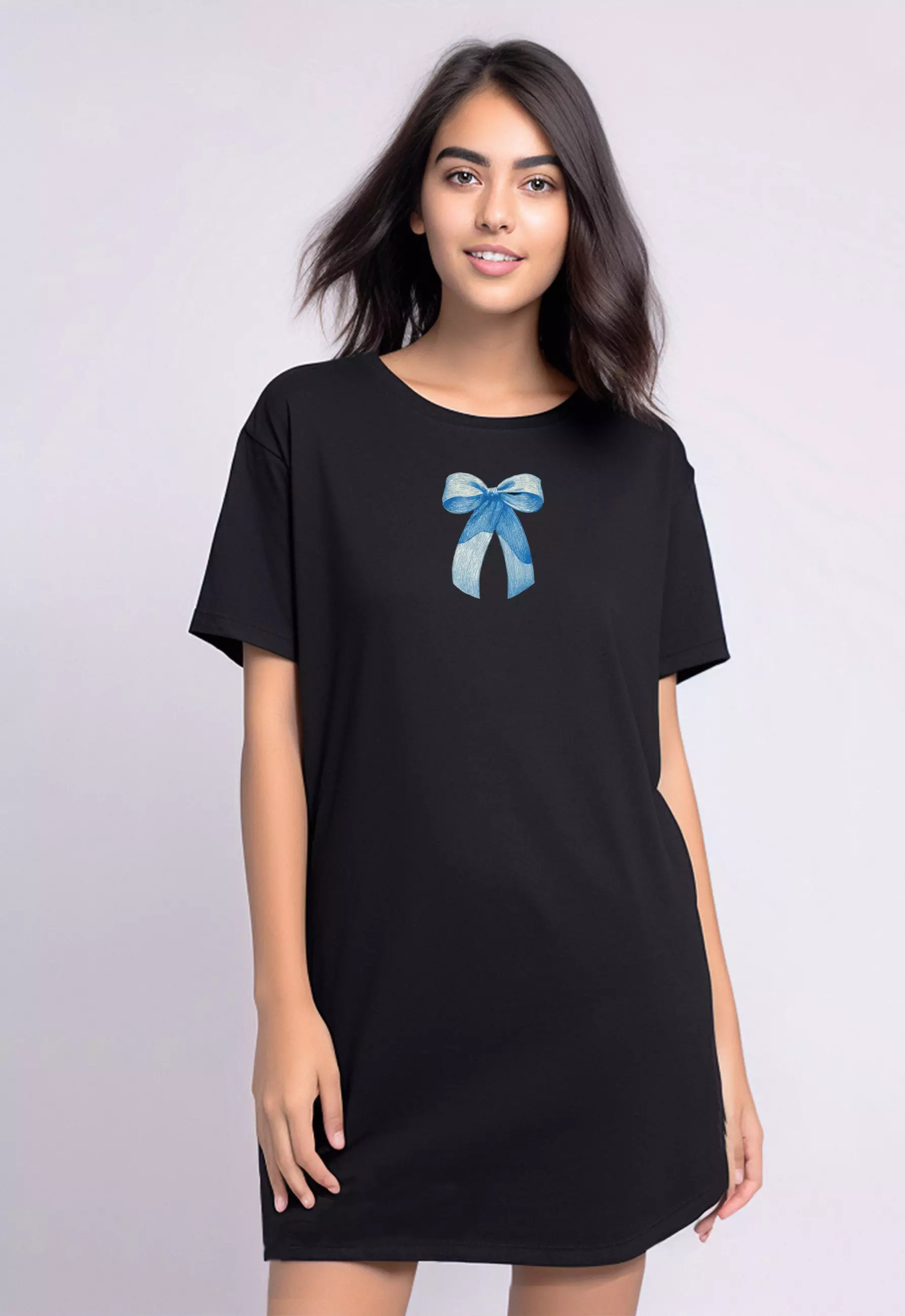 LTF60 Kaos Dress Loose Oversize Wanita bahan instacool "blue ribbon" hitam