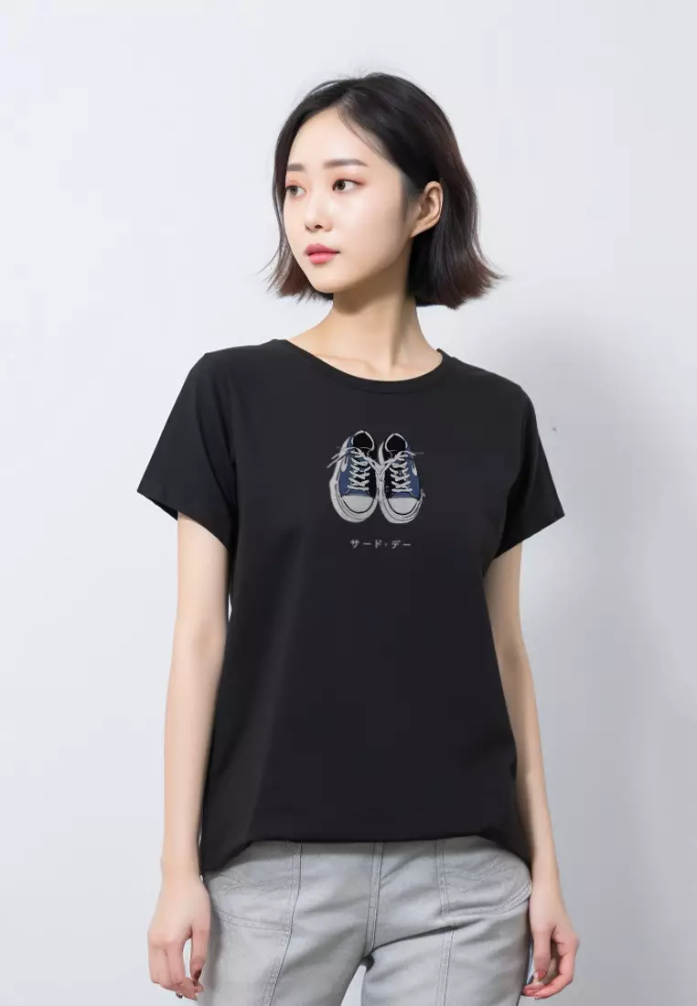 Third DayLTF66 kaos wanita lengan pendek slim fit gambar sepatu instacool ss "sneakers katakana" hitam350000.00109000.00