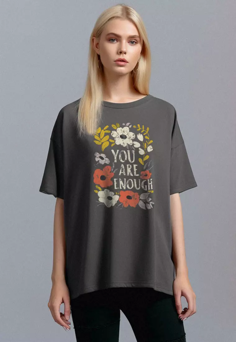 LTF70 Kaos Boyfriend Oversize Wanita Abu Tua Washed Effect "you are enough" instacool abu tua