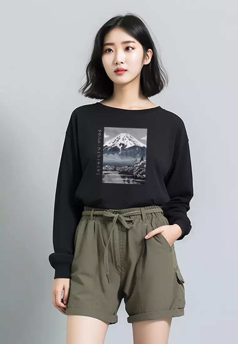 LTF99 Kaos Wanita Gambar Gunung Lengan Panjang Adem "mount fuji" hitam