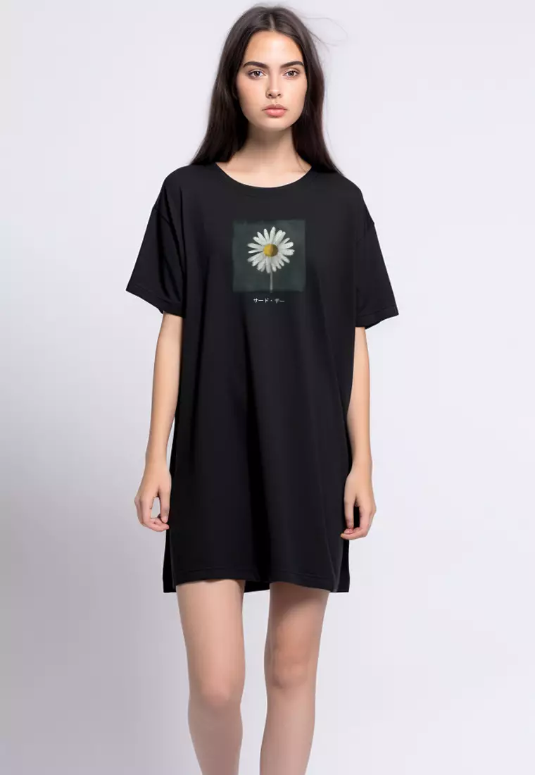 Third DayLTG09 Kaos Dress Oversize Wanita Adem instacool "daisy katakana" hitam400000.00149000.00