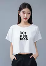 LTG27 Kaos Oversize Crop OLC Wanita "not in the mood" putih