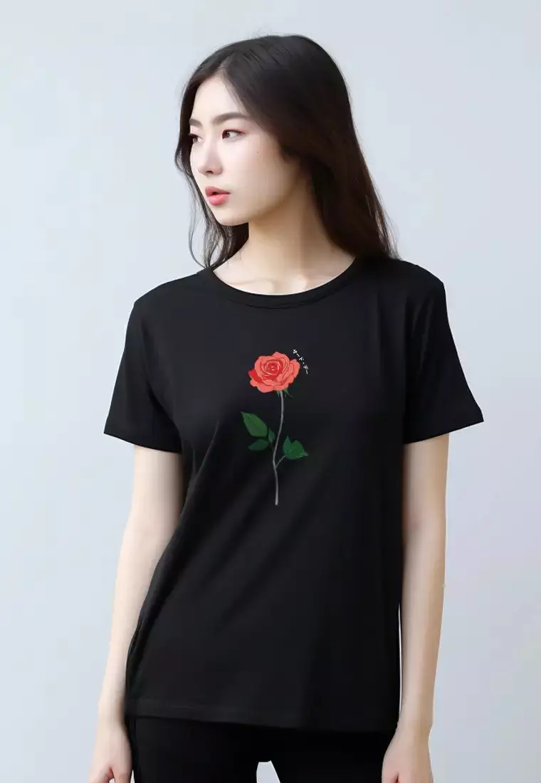 LTG44 Kaos Wanita Gambar Bunga Rose instacool ss hitam