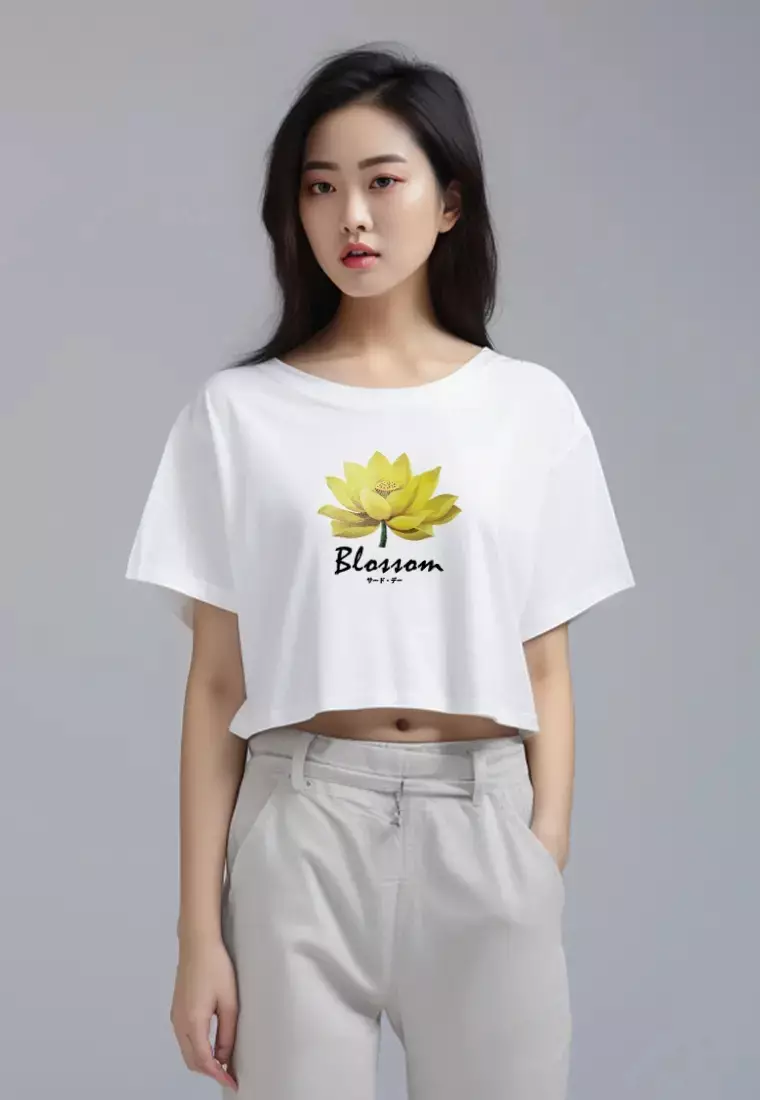Third DayLTG50 Kaos Wanita Gambar Bunga Lotus Kuning OLC Crop Oversize Putih350000.00109000.00