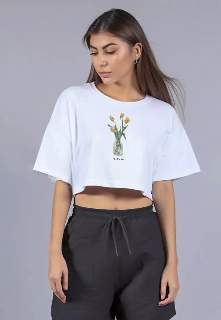 Third DayLTG57 kaos oversize wanita motif gambar bunga tulip OLC putih350000.00109000.00