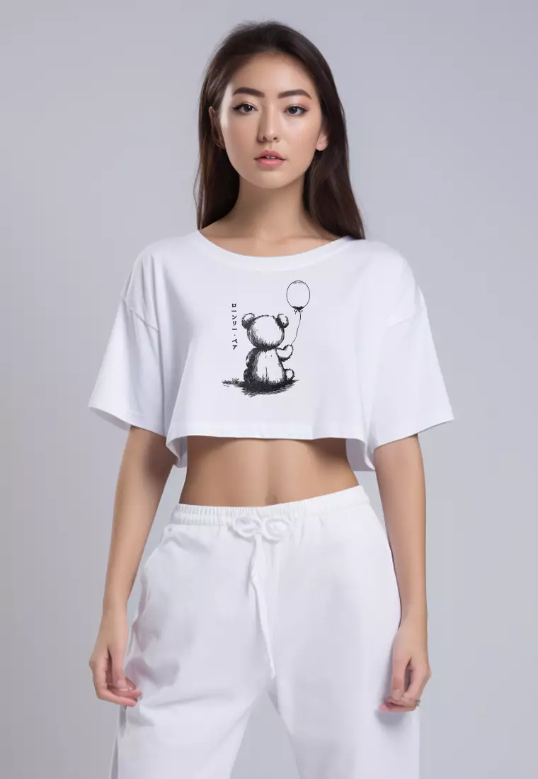 LTG94 Kaos Crop Wanita OLC teddy baloon putih