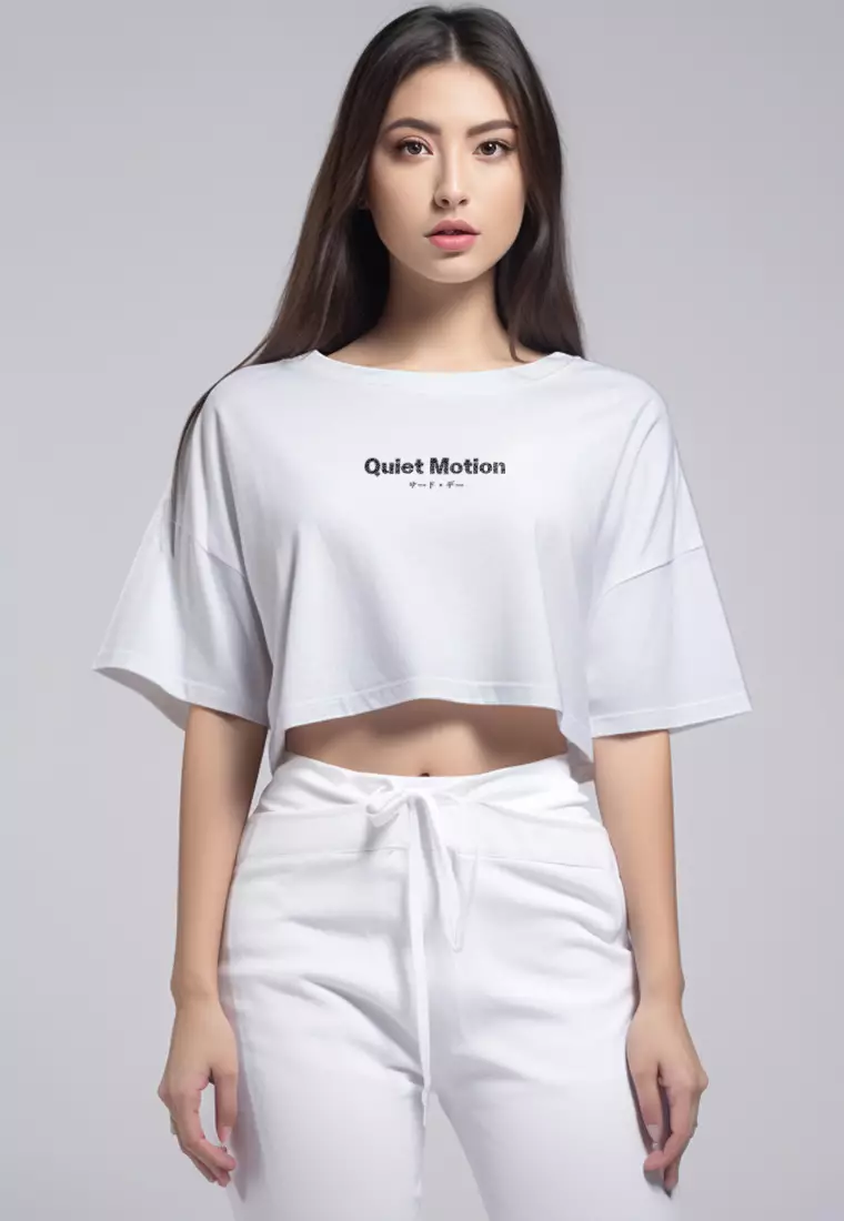 LTG98 Kaos Crop Wanita OLC Quiet Motion putih