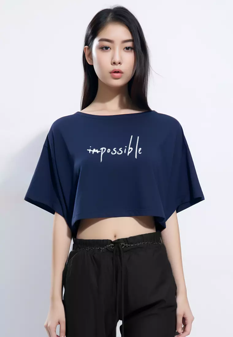 LTH04 Crop Top OLC Wanita "im possible" navy