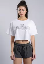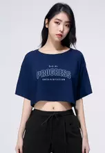 LTH08 Kaos Crop Top Wanita "progress" OLC hitam