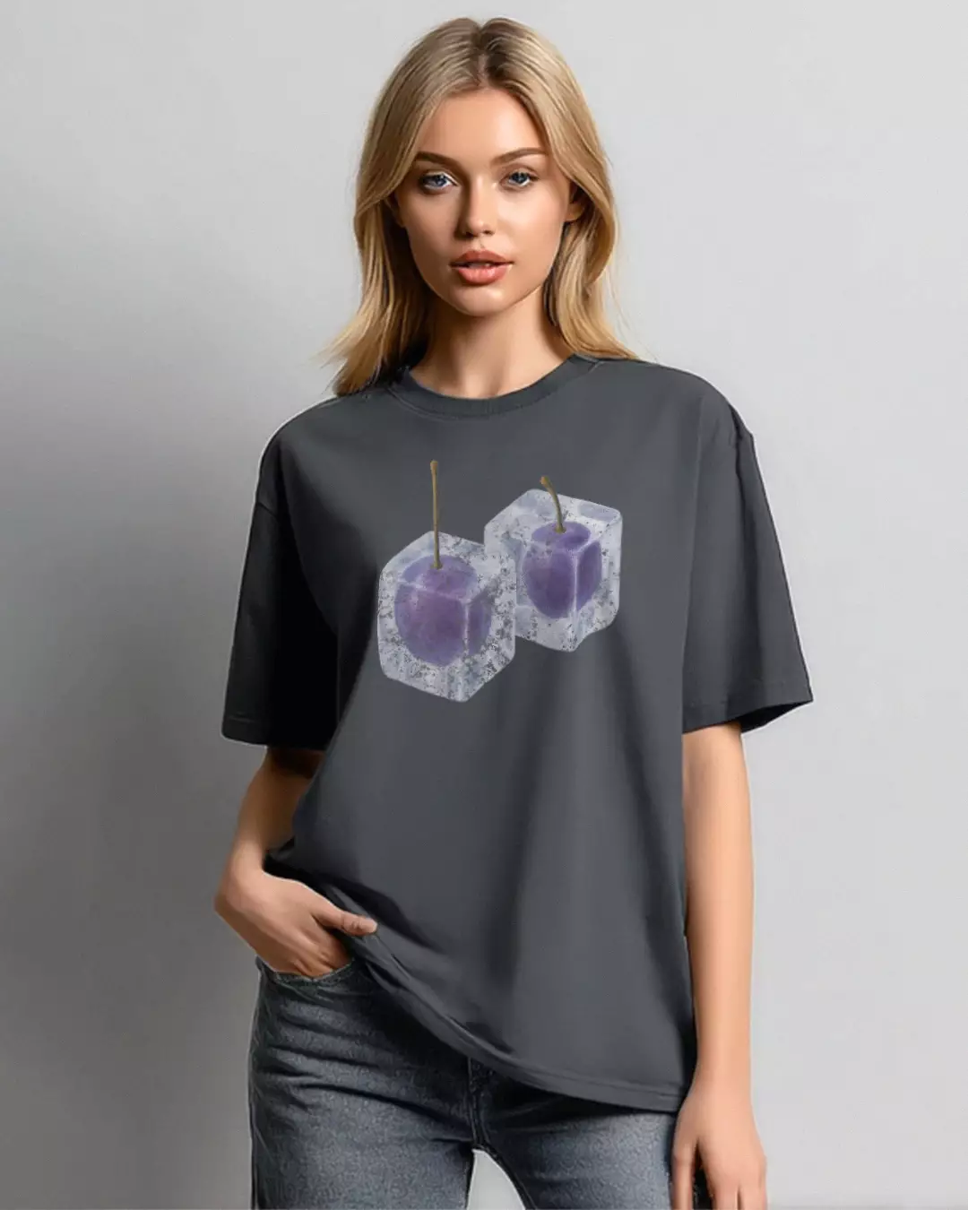 LTH14 kaos oversize wanita dark grey washing efek grunge "iced grape"