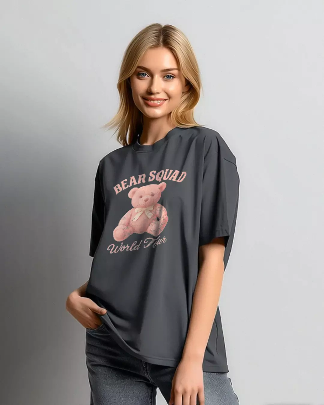 LTH15 kaos oversize wanita dark grey washing efek grunge "bear squad"