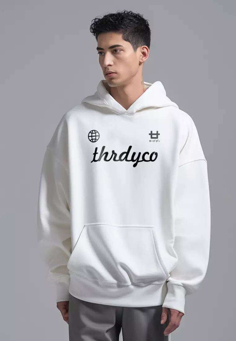 MOA99 Hoodies Oversize ScubaLux Bahan Scuba Adem "thirdday world logo" putih