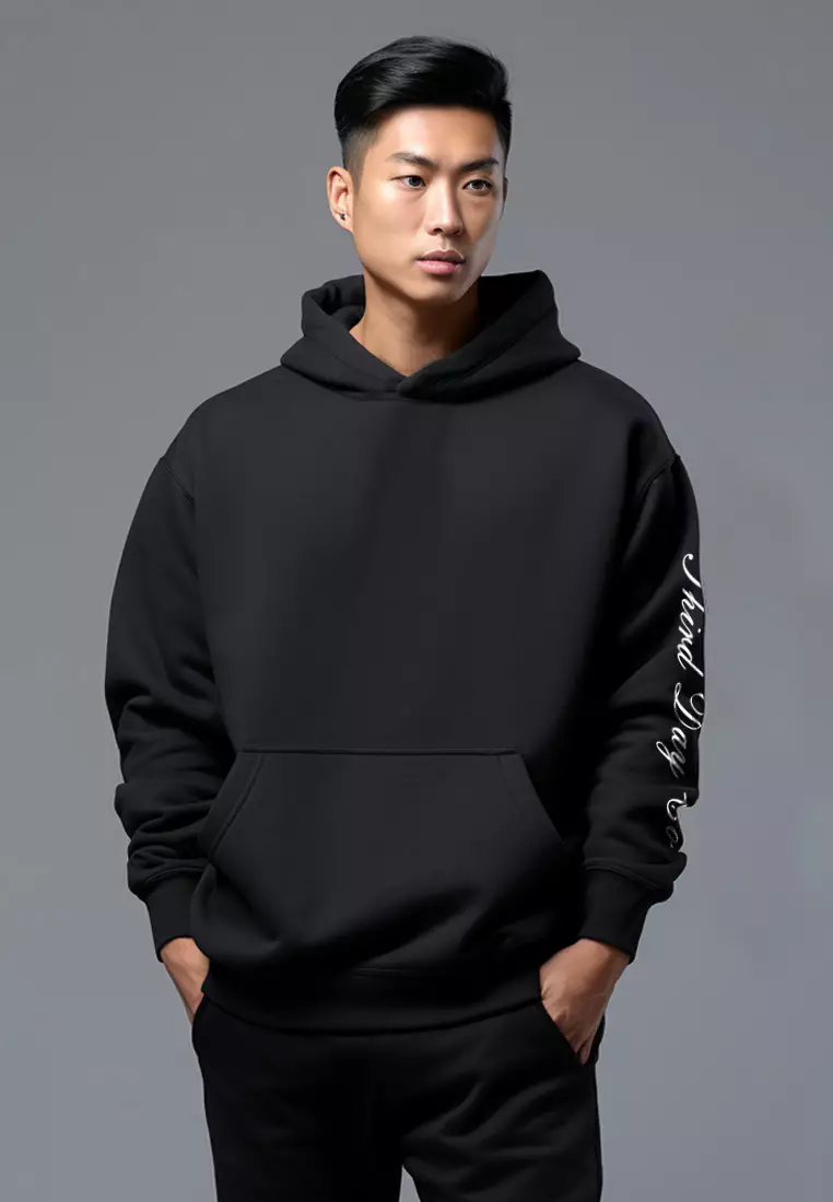 MOB02 Hoodies Oversize ScubaLux Bahan Scuba Adem "thirddayco script arm" hitam