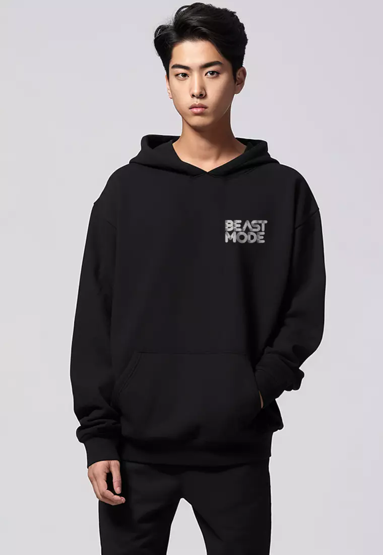 MOB17 Hoodie Pria Premium ScubaLux Adem "beast mode" hitam
