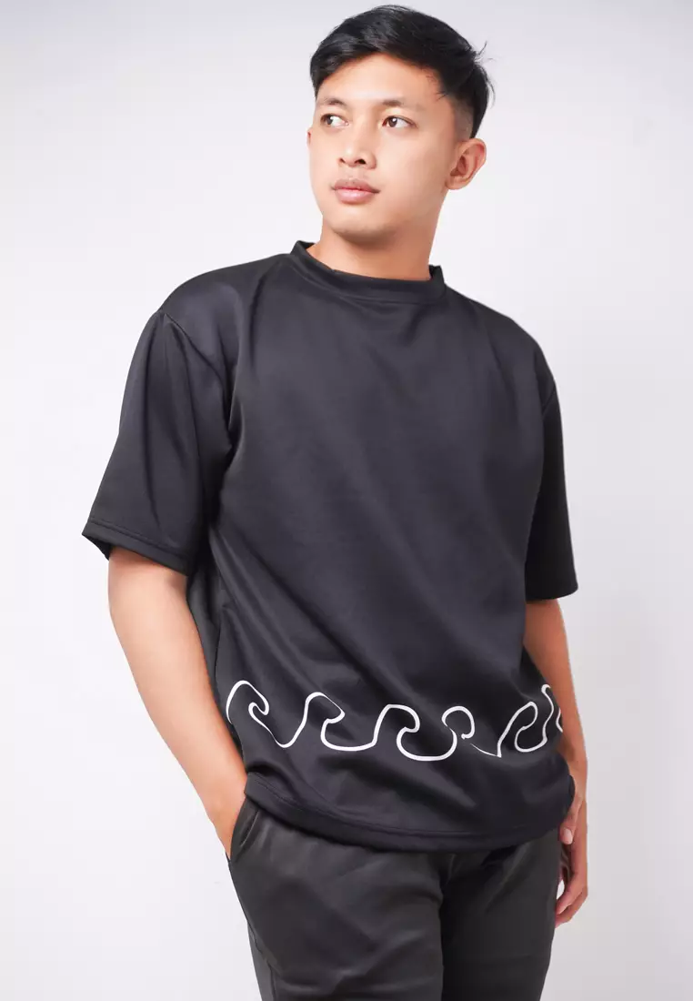 MTK03 Kaos Oversize Distro Pria Wave Hitam