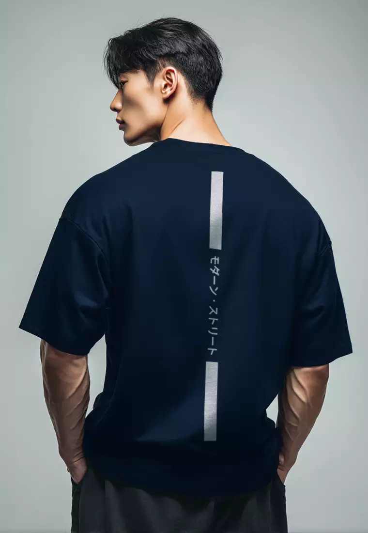 MTM10 kaos oversize tebal scuba pria thirdday osaka katakana back vertikal navy