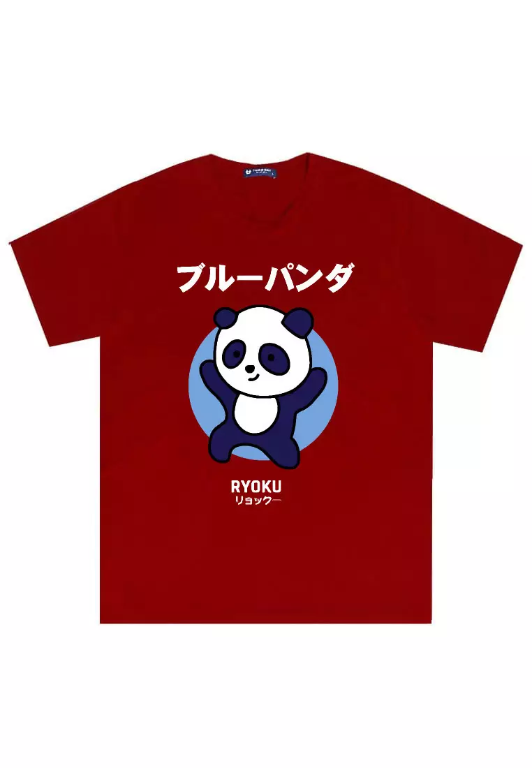 MTM70 kaos anime panda tulisan jepang pria instacool maroon