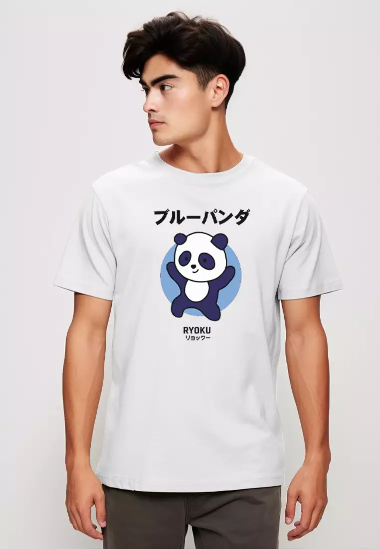 MTM71 kaos anime panda tulisan jepang pria instacool putih