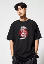 MTM89 kaos oversize tebal scuba dragon putih jepang naga hitam