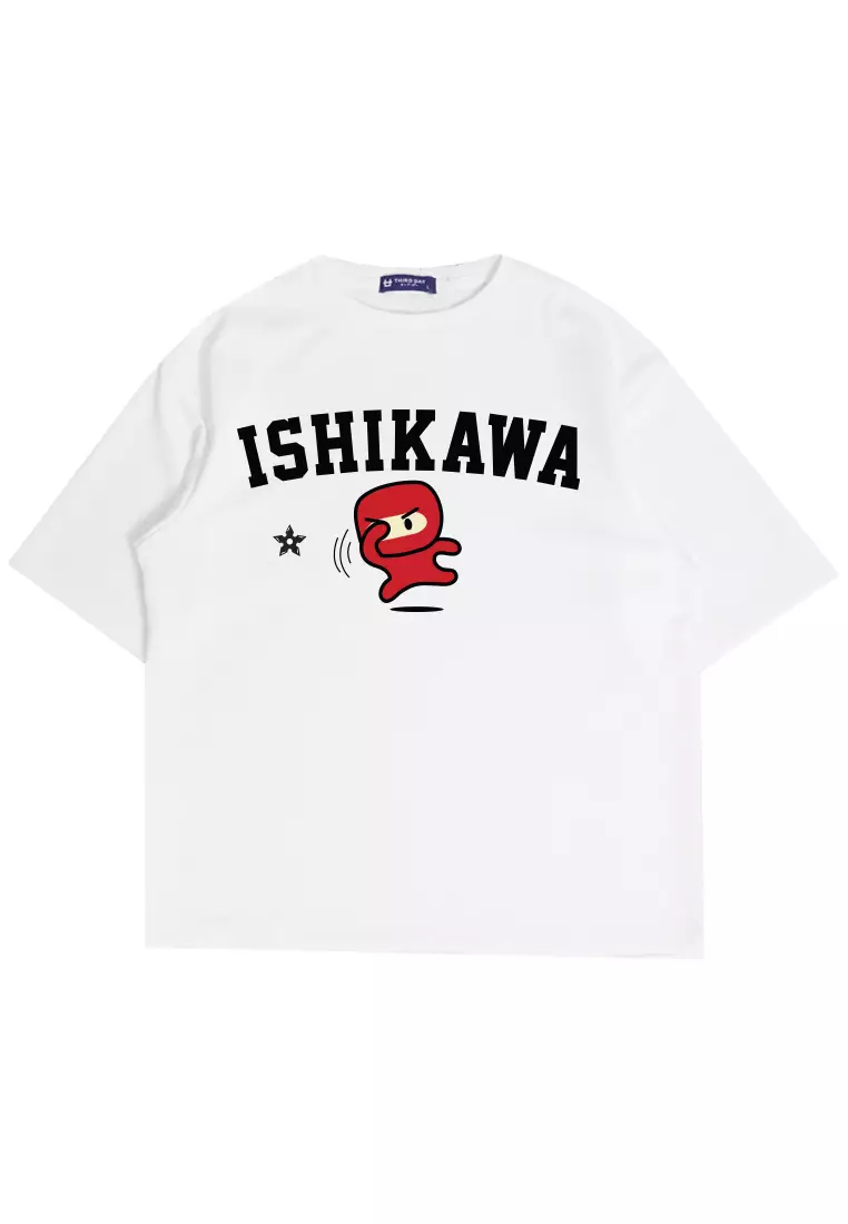 MTN09 kaos oversize tebal scuba anime komik kartun ishikawa ninja shurikan putih