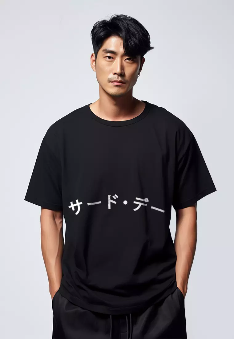 MTN74 kaos oversize tulisan jepang Third Day arc katakana outline hitam
