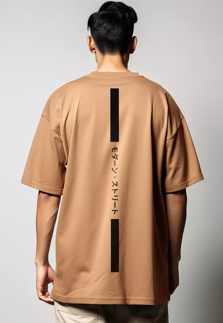 MTN85 kaos oversize distro cowok green army scuba leher crew osaka katakana back vertikal khaki