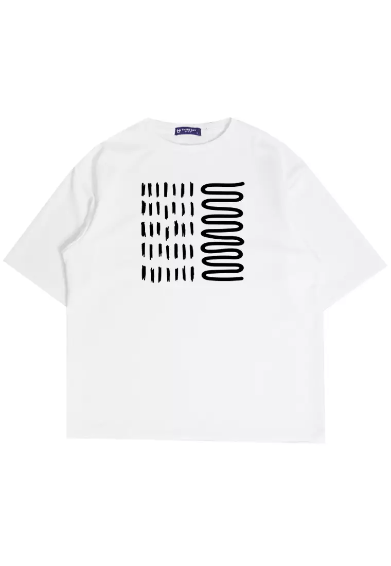 MTO22 kaos oversize abstrak aesthetic kece pria scuba third day bahan tebal crew neck putih
