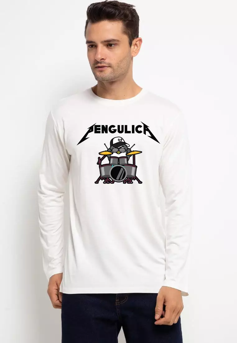MTO47 kaos band metal putih lengan panjang instacool long sleeve Pengullica DJ Rock putih