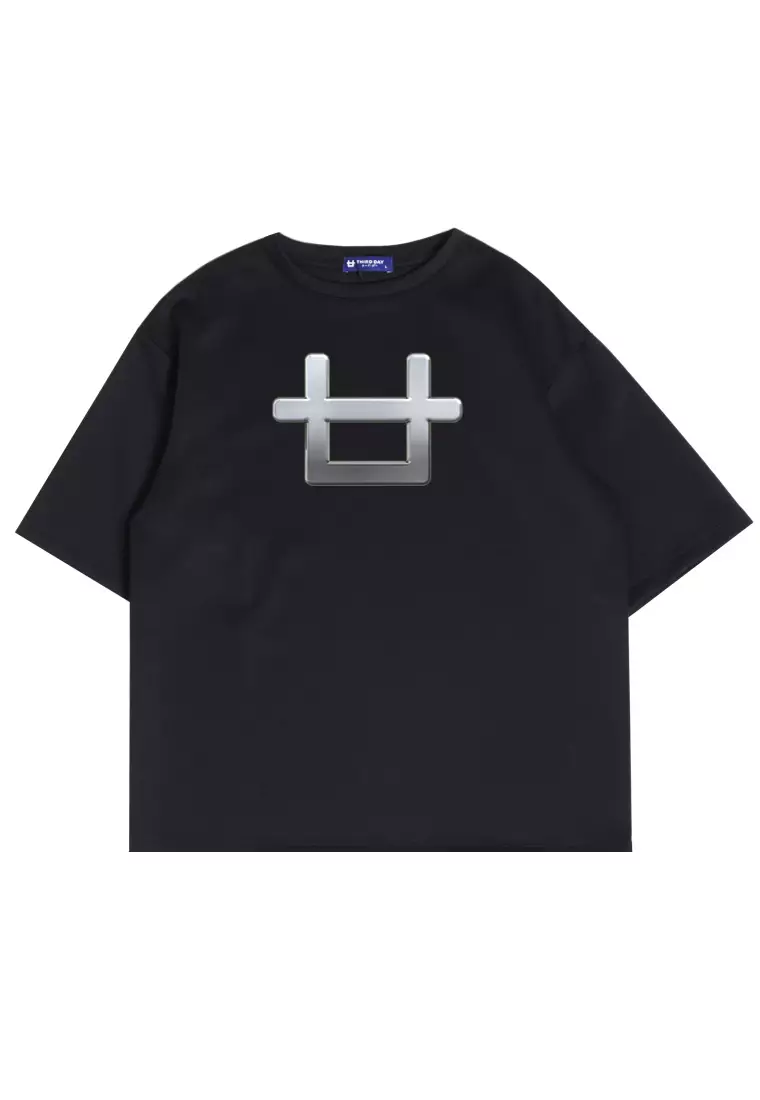 MTP34 kaos oversize aesthetic unik 3d metal plate third day logo bahan scuba tebal hitam