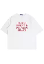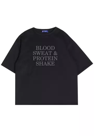 MTQ03 kaos oversize gym bahan scuba distro blood sweat protein shake binaraga cowo hitam