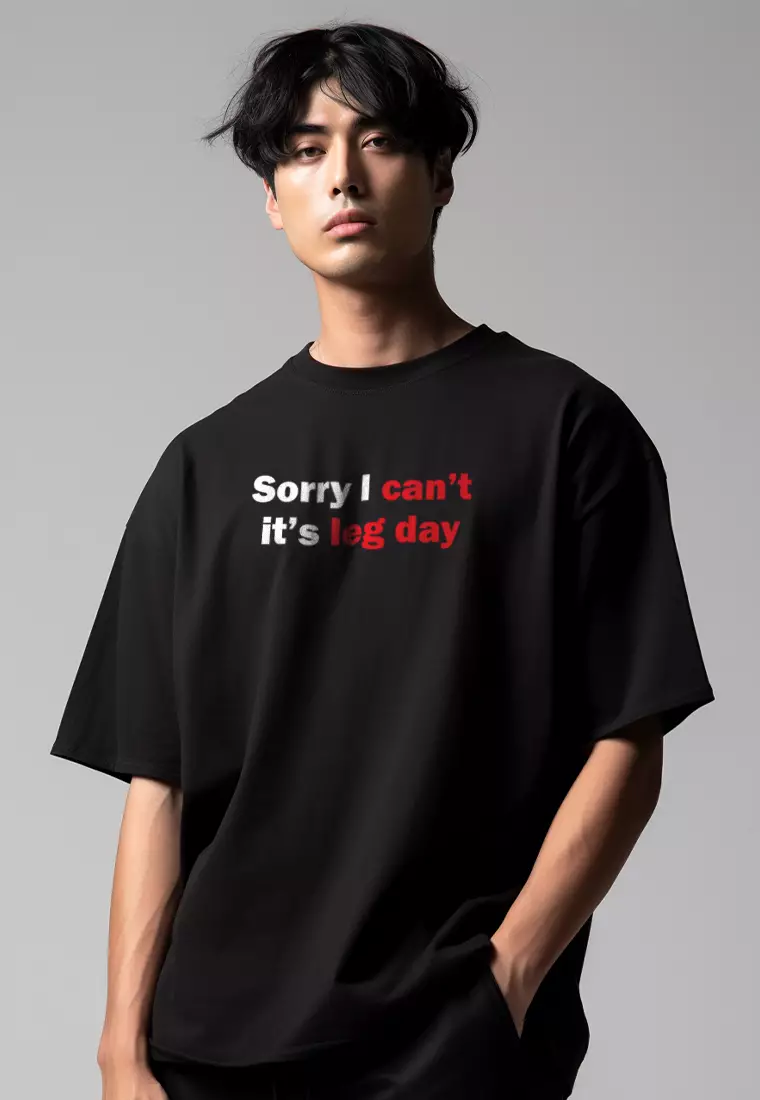 MTQ05 kaos oversize gym bahan scuba distro gymbro sorry i cant leg day binaraga cowo hitam