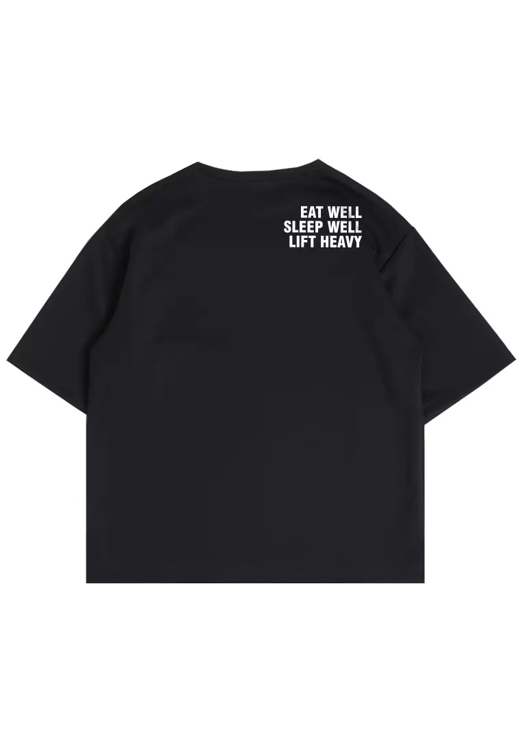 MTQ16 kaos oversize gym pria distro bahan tebal scuba eat well sleep well hitam