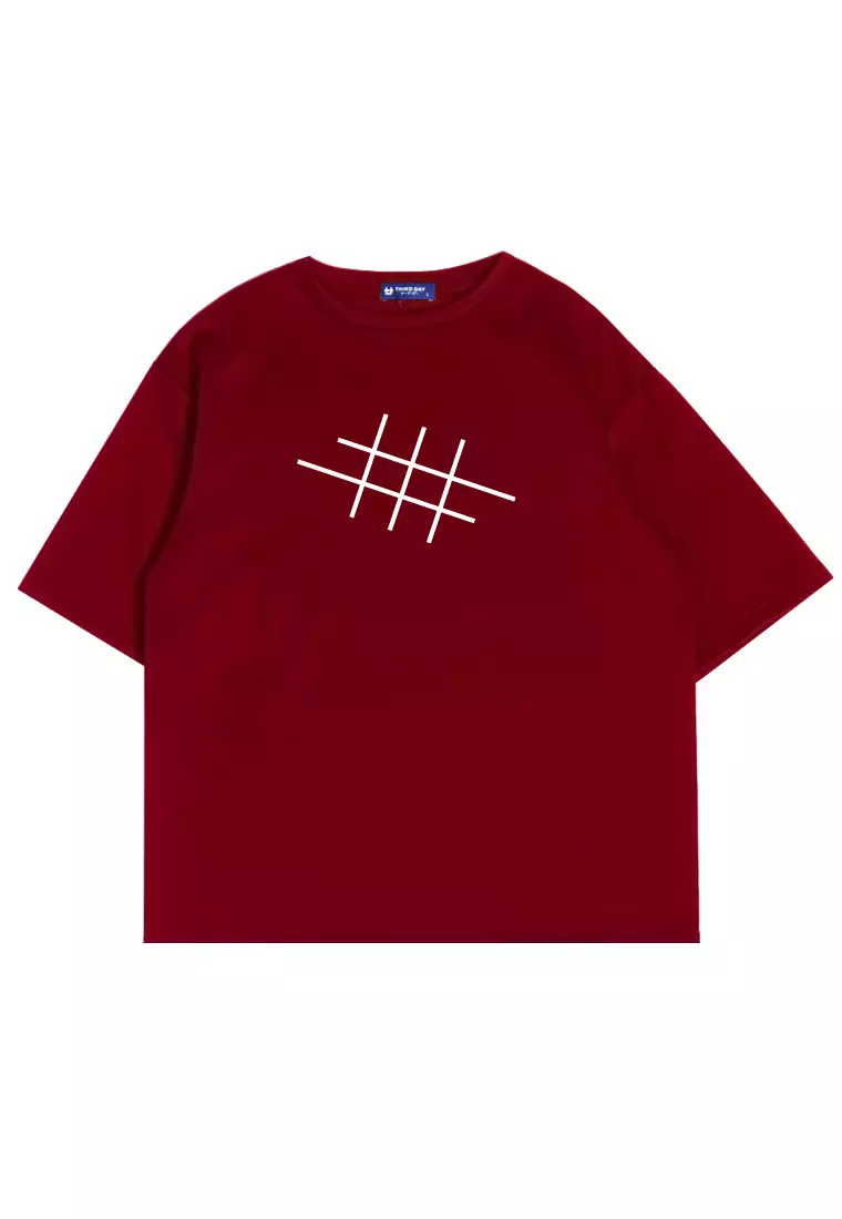 MTQ40 kaos oversize tebal bahan scuba distro pria aesthetic garis tictactoe merah maroon