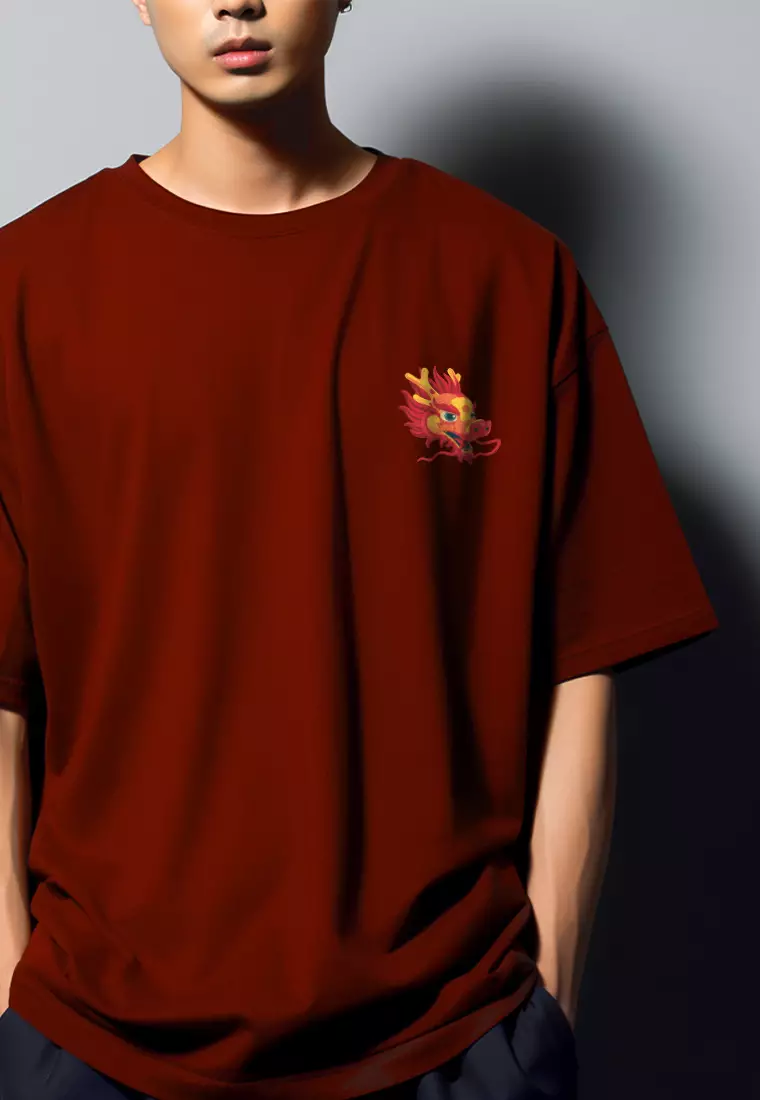 MTQ71 kaos oversize bahan tebal scuba 215gsm imlek sinciah dragon dakir merah maroon