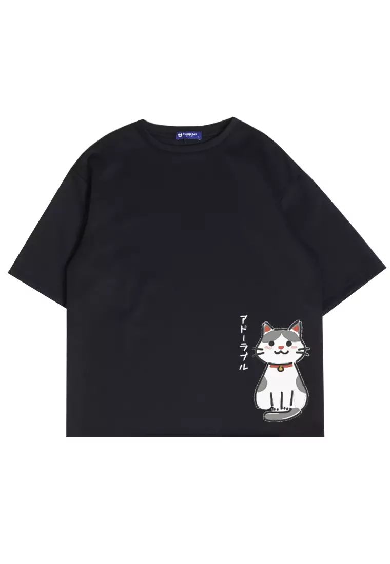 Third DayMTQ96 kaos oversize scuba bahan tebal versi couple "japan cat" hitam400000.00150000.00