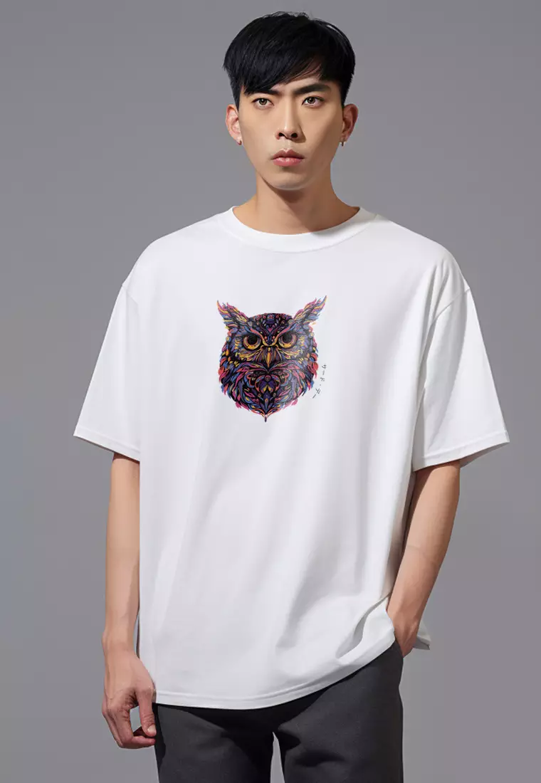 MTR79 Kaos Oversize Gambar Burung Hantu Owl Bahan Tebal Scuba "owl katakana" Putih
