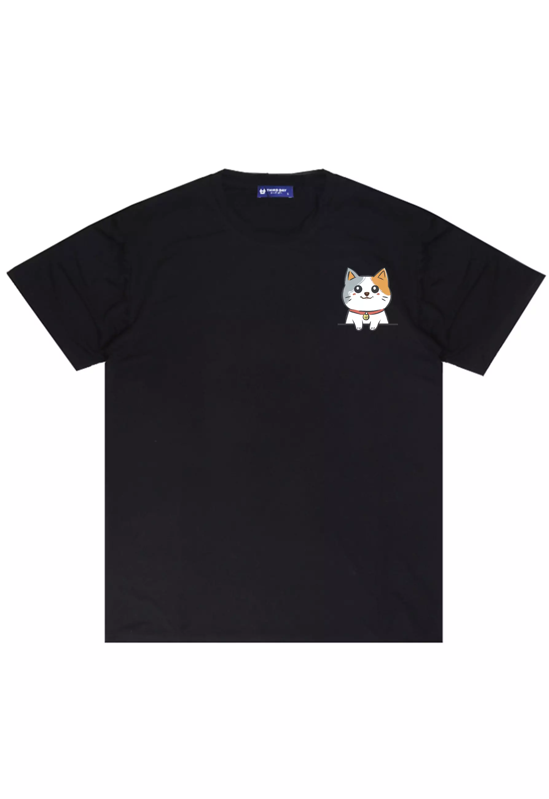 MTR85 Kaos Couple Pria Tangan Pendek Gambar Kucing "Pocket Cats" Instacool Hitam