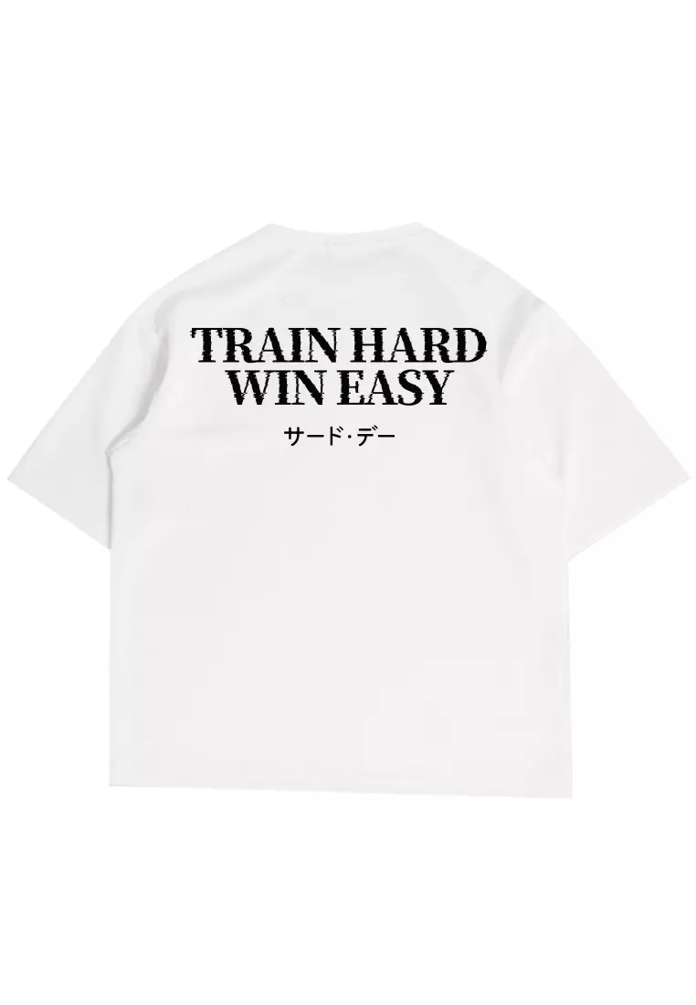 MTS13 Kaos Oversize Gym Scuba Tebal "Train Hard Win Easy" Putih