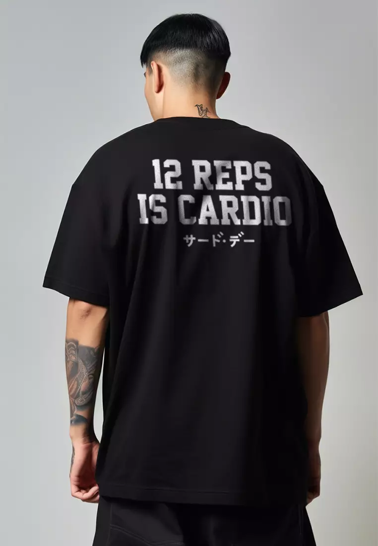 MTS39 Kaos Oversize Gym Scuba Tebal "12 reps cardio" hitam