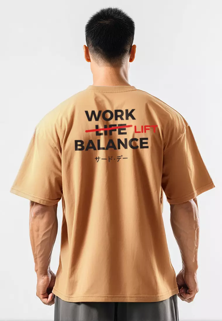 MTS83 Kaos Oversize Gym ScubaLux bahan tebal "work lift balance" khaki
