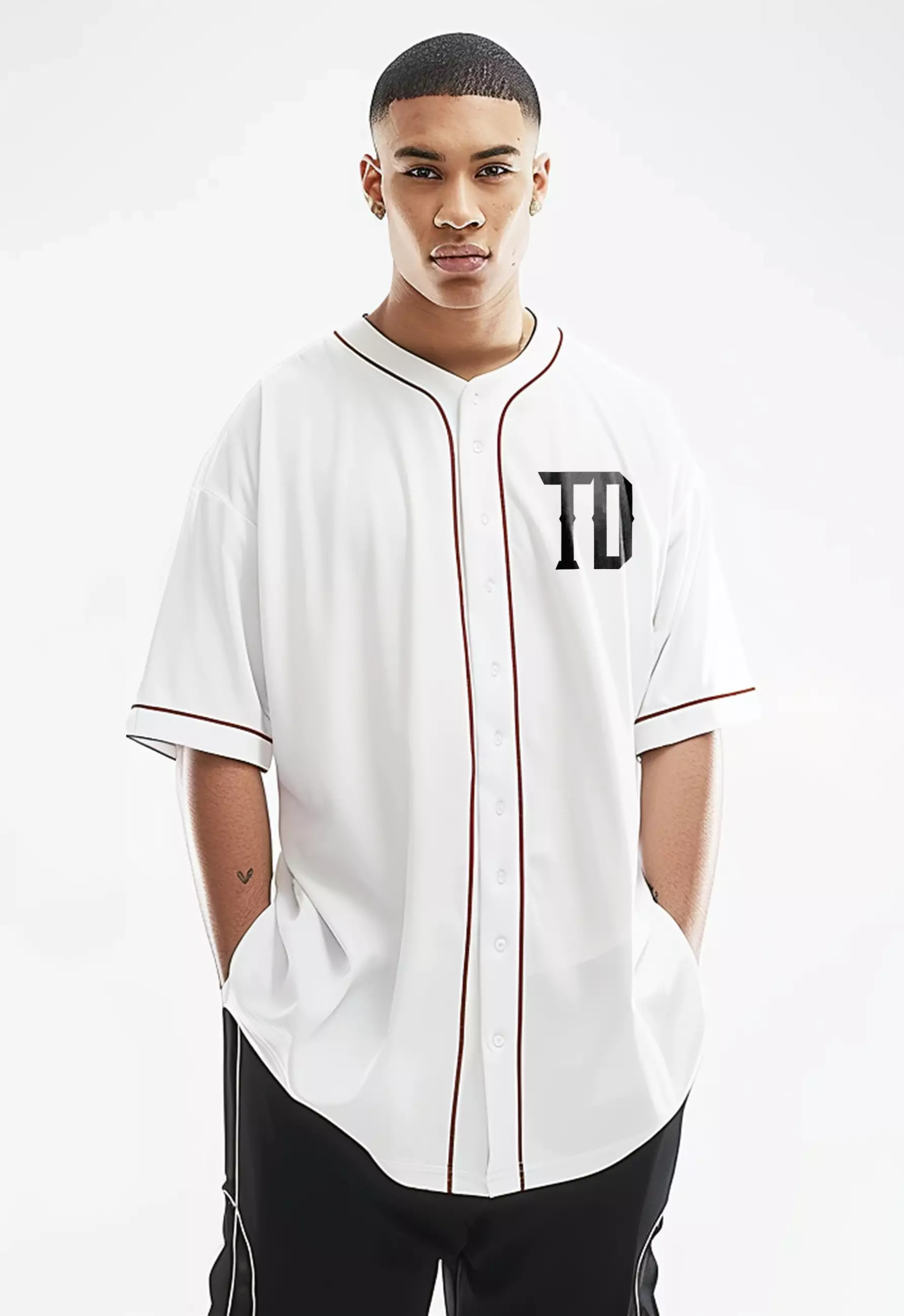 MTS95 Kemeja Baseball Oversize Jersey Hitam Polos "TD spike" putih