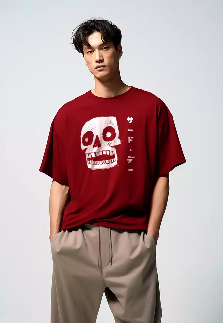 Third DayMTS99 Kaos Oversize Gambar Tengkorak Scuba Bahan Tebal "tengkorak katakana" burgundy merah400000.00150000.00