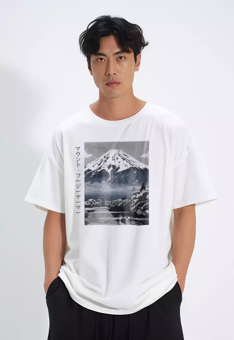 MTT26 Kaos Gambar Gunung Oversize Scubalux Bahan Scuba tebal "mount fuji" Putih